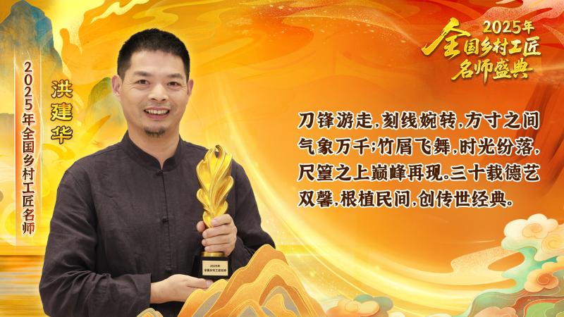 日前,由中央广播电视总台与农业农村部联合主办的“匠美乡村 大地颂歌——2025年全国乡村工匠名师盛典”在北京举行。该盛典发布了10名2025年全国乡村工匠名师宣传选树对象。黄山市徽州区政协委员、徽州雕刻博物馆馆长洪建华成功入选,系我省唯一获此荣誉的乡村工匠。