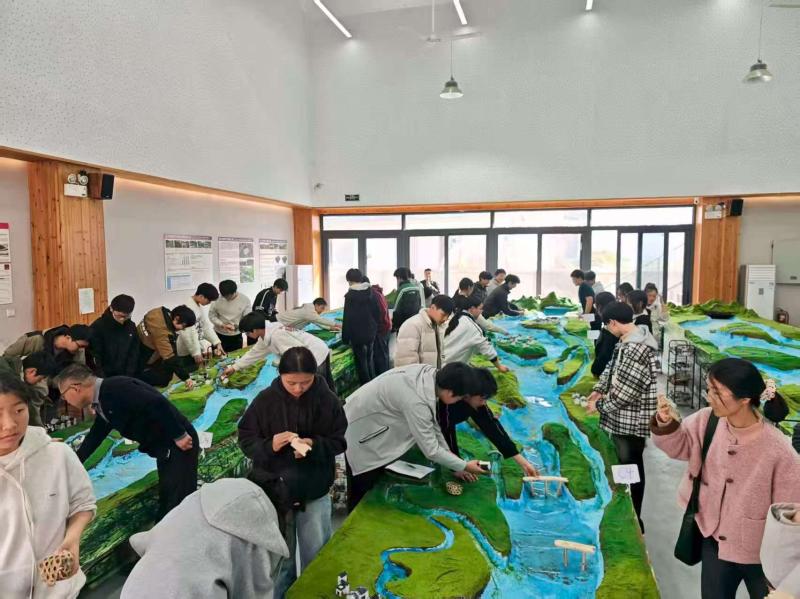 图为3月13日学生们在被授予“徽州堨坝·世界灌溉工程遗产教育基地”的国家水利部水生态保护和水利遗产重点实验室内,通过听介绍、看堨坝模型演示及以模建坝互动操作,了解徽州先民建水利工程的治水用水智慧,认识徽州堨坝在灌溉、防洪、生态调节等方面的多功能价值,增强了对家乡世界灌溉工程遗产徽州堨坝的文化认同和保护意识。
