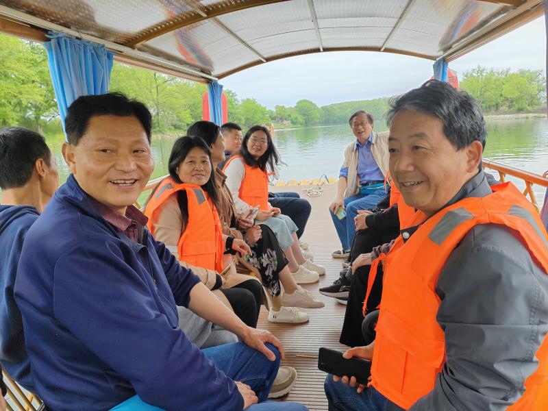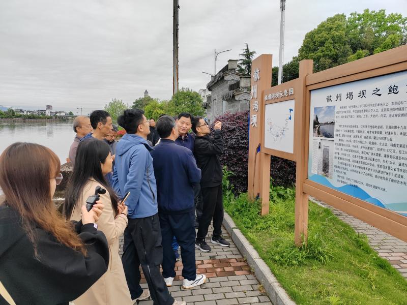 采风团一行先后参观了丰乐河上的鲍南堨、雷堨、吕堨、条垅堨、昌堨五大古堨坝,聆听了新安太守鲍宏重民兴农倡建鲍南堨、新安内使吕文达携亲凿渠建吕堨、澄塘先民吴大用捐田建昌堨等故事,参观了徽州先民为纪念建堨人而建的“吕堨报功祠”和“吴大用祠”遗址,并乘坐竹筏体验了丰乐河水上旅游,在枫杨林里和游客互动,随后还考察了作为全国首个世界灌溉工程遗产教学基地的徽州水文化研学中心。